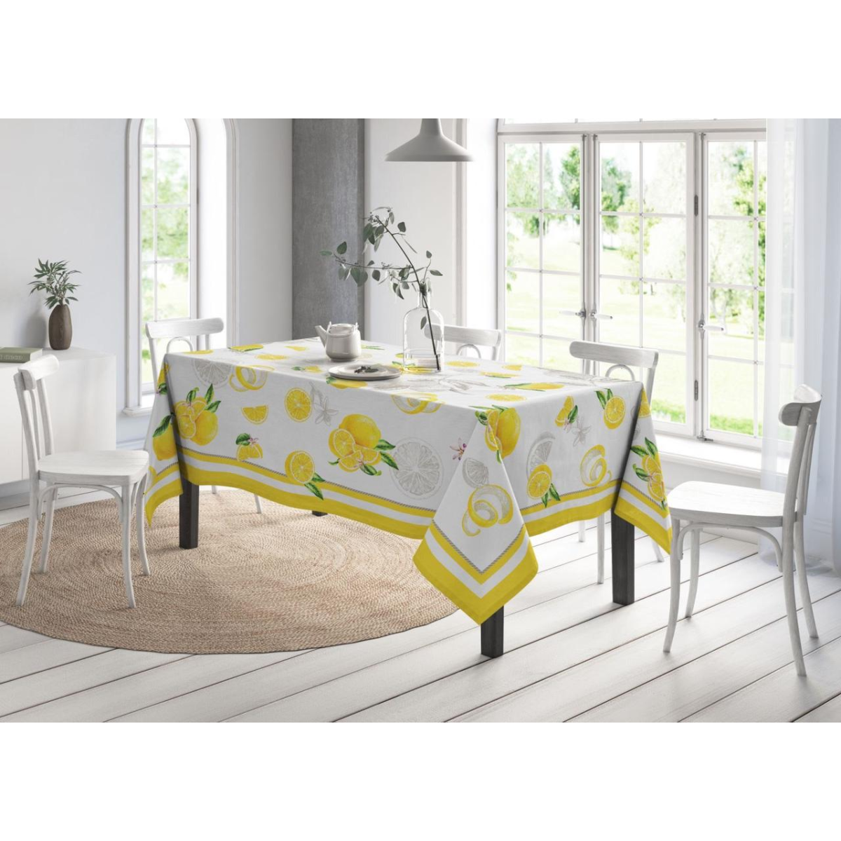 Скатертина водовідштовхувальна “Лимон із жовтою облямівкою“ 144*234 см