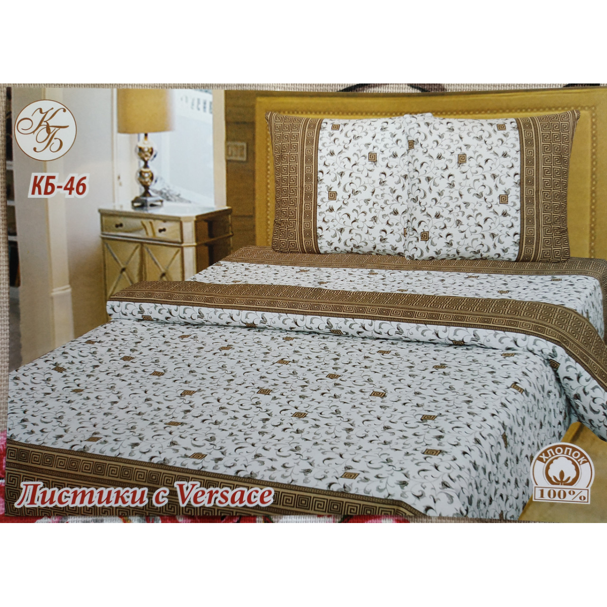 Комплект постільної білизни Тіротекс бязь “ Листочок з Versace коричневий“ Двоспальний